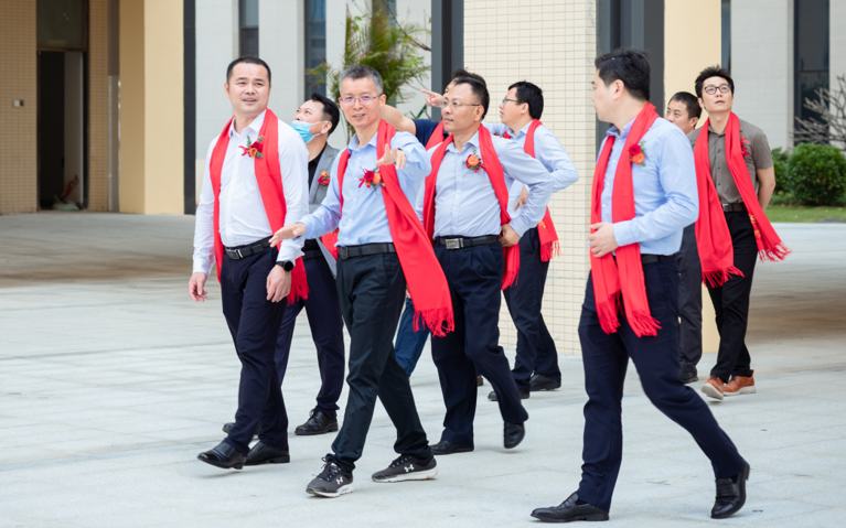 在現場各位嘉賓的見證下,一博科技董事長、總經理湯昌茂先生,珠海市金灣區副區長黃能強先生,區人大副主任李東紅先生,平沙鎮鎮黨委書記周波先生,一博科技董事、副總經理、董事會秘書王燦鐘先生,董事、副總經理柯漢生先生,副總經理鄭宇峰先生,副總經理朱興建先生,一起為一博珠海基地開園剪彩。